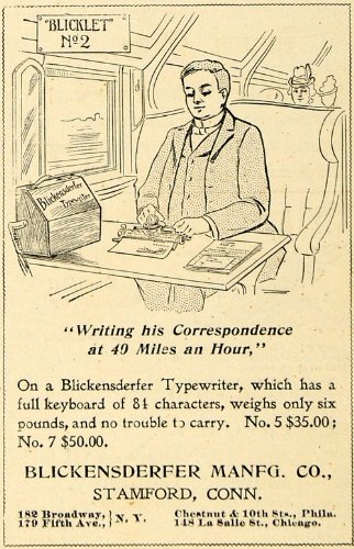 1899 Ad Blickensderfer Typewriter Train Car Pricing - Original Print Ad Review