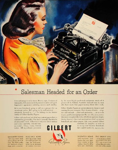 1939 Ad Typewriter Secretary Office Gilbert Paper Sales - Original Print Ad Review